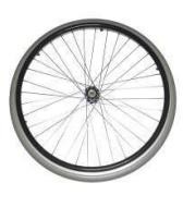 Rueda trasera maciza de 600 mm con cubierta de poliuretano (PU), eje QR de acero y diseño anti-pinchazos. Ideal para sillas de ruedas o equipos de movilidad, ofrece durabilidad, resistencia y un rodado suave sin mantenimiento de inflado.