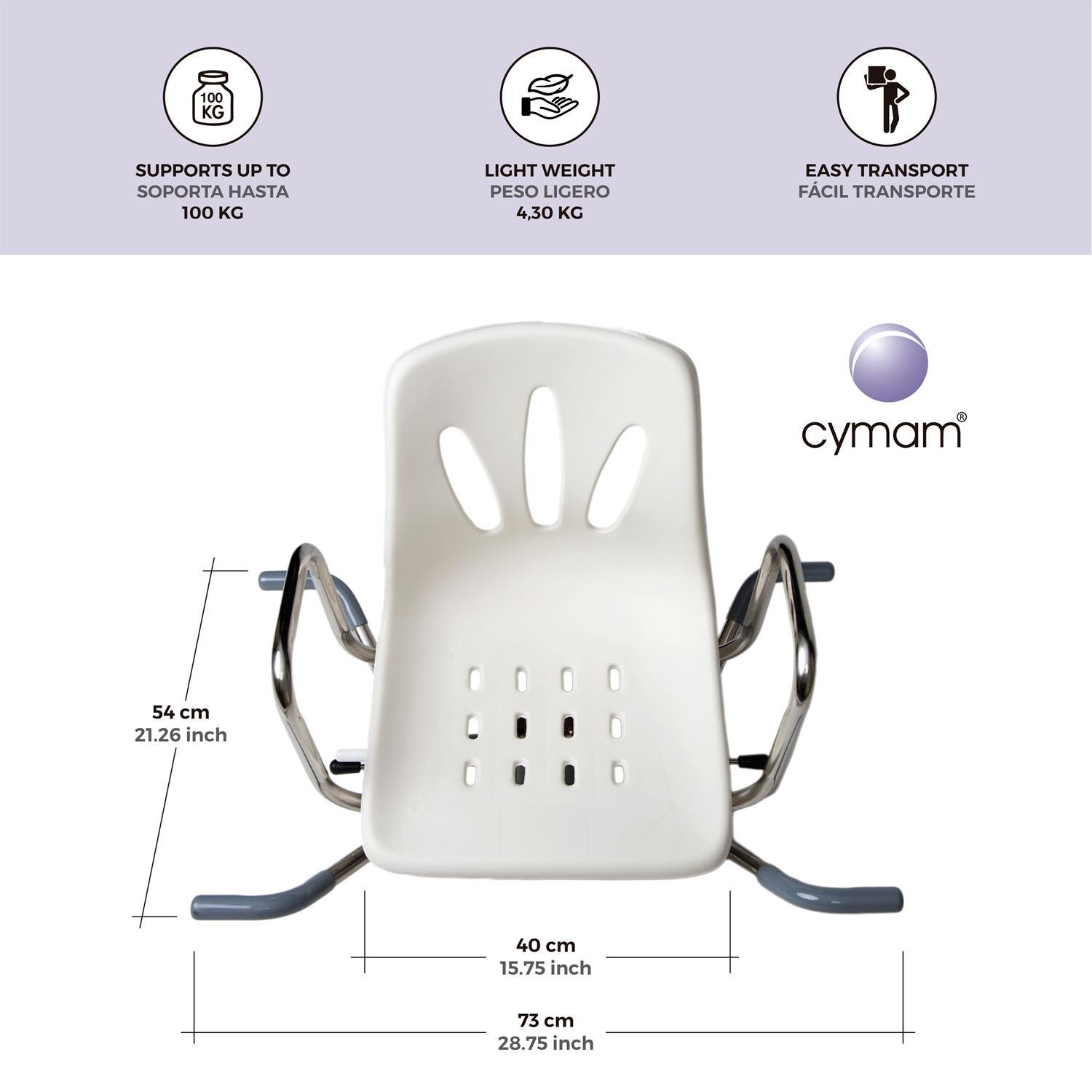 El asiento giratorio cymam de bañera modelo CAUDAL, facilita las transferencias a la bañera para poder realizar un aseo seguro y confortable tanto para el usuario como para el cuidador.
