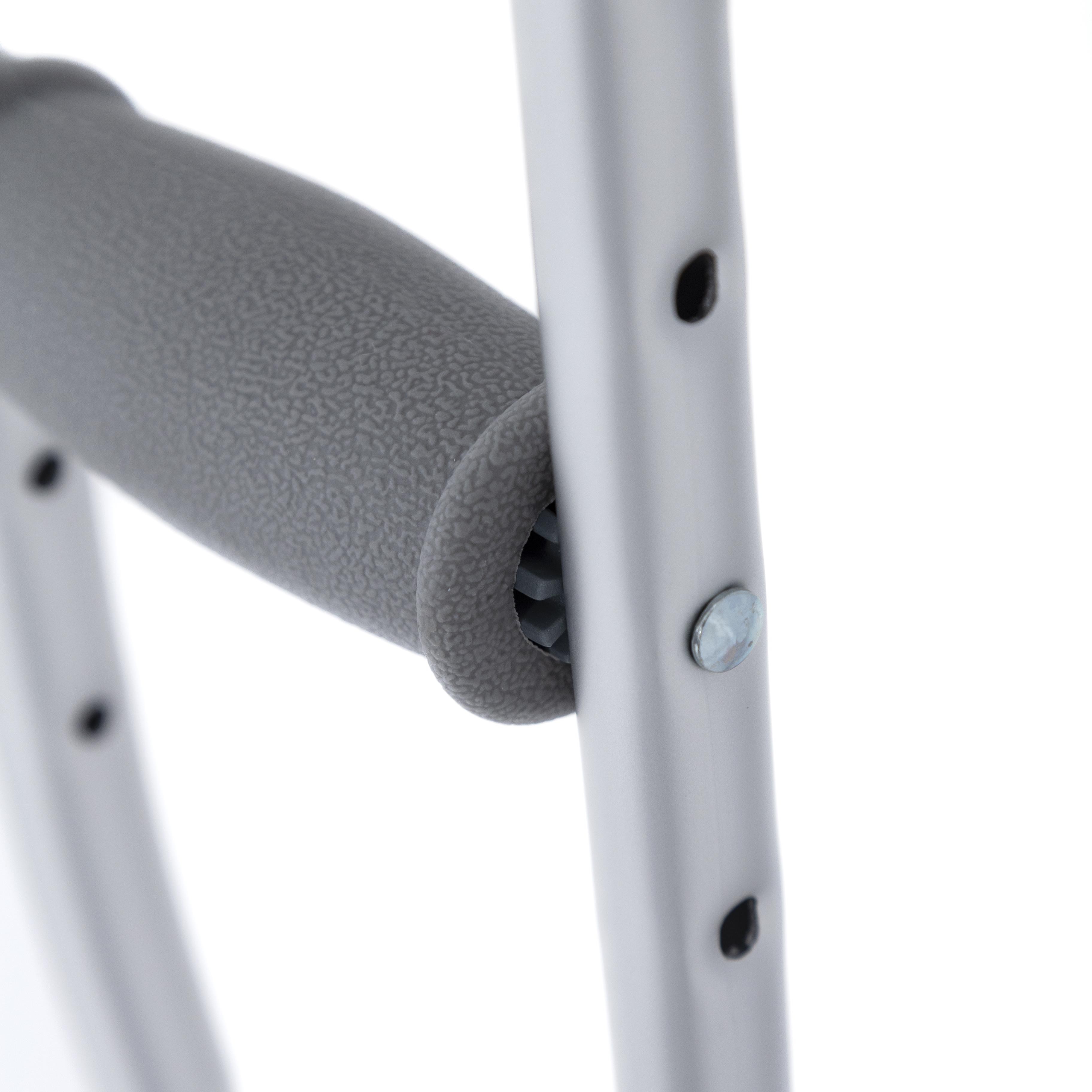 Altura regulable en 9 posiciones, adaptándose a diferentes estaturas. Empuñadura ajustable en 5 niveles, optimizando la comodidad del usuario. Conteras antideslizantes de 22 mm, mejorando la seguridad y estabilidad. Diseño ergonómico, reduciendo la presión en las axilas y las manos. Estructura resistente y ligera, ideal para uso diario.