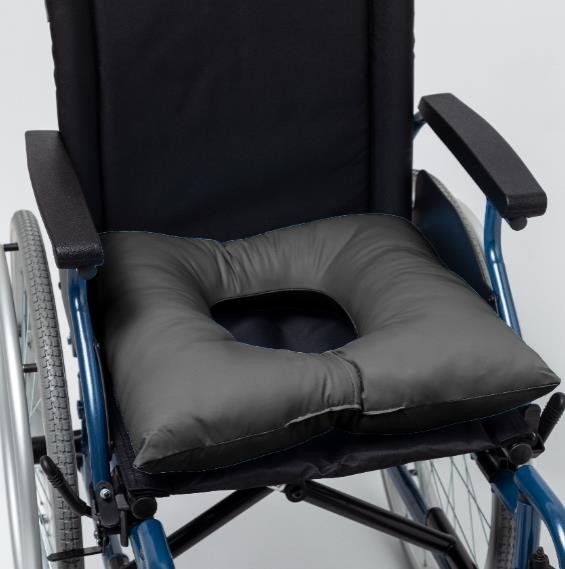 Cojín antiescaras con funda de PU impermeable e ignífugo. Previene la aparición de escaras o úlceras por presión en usuarios que pasan gran parte del día sentados.