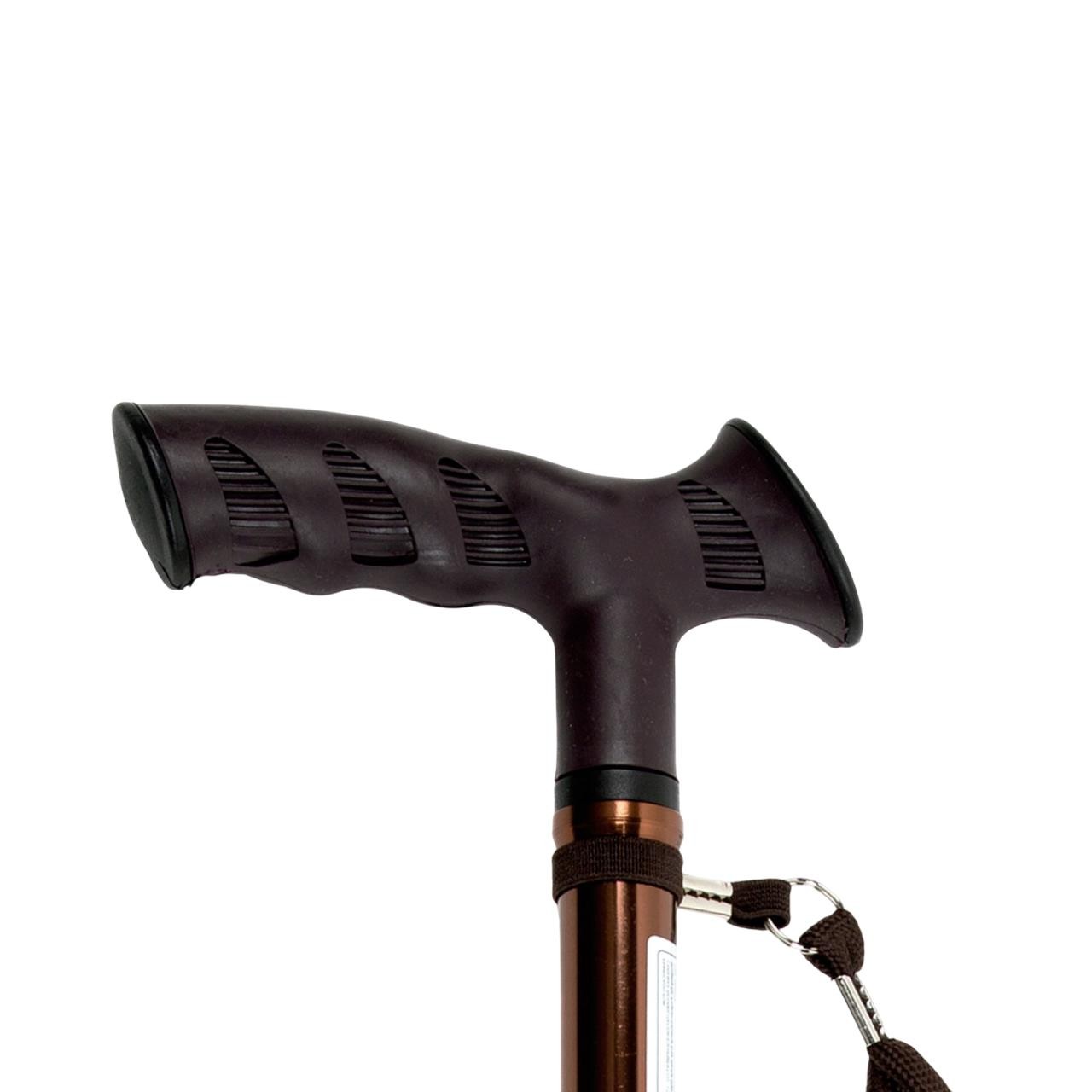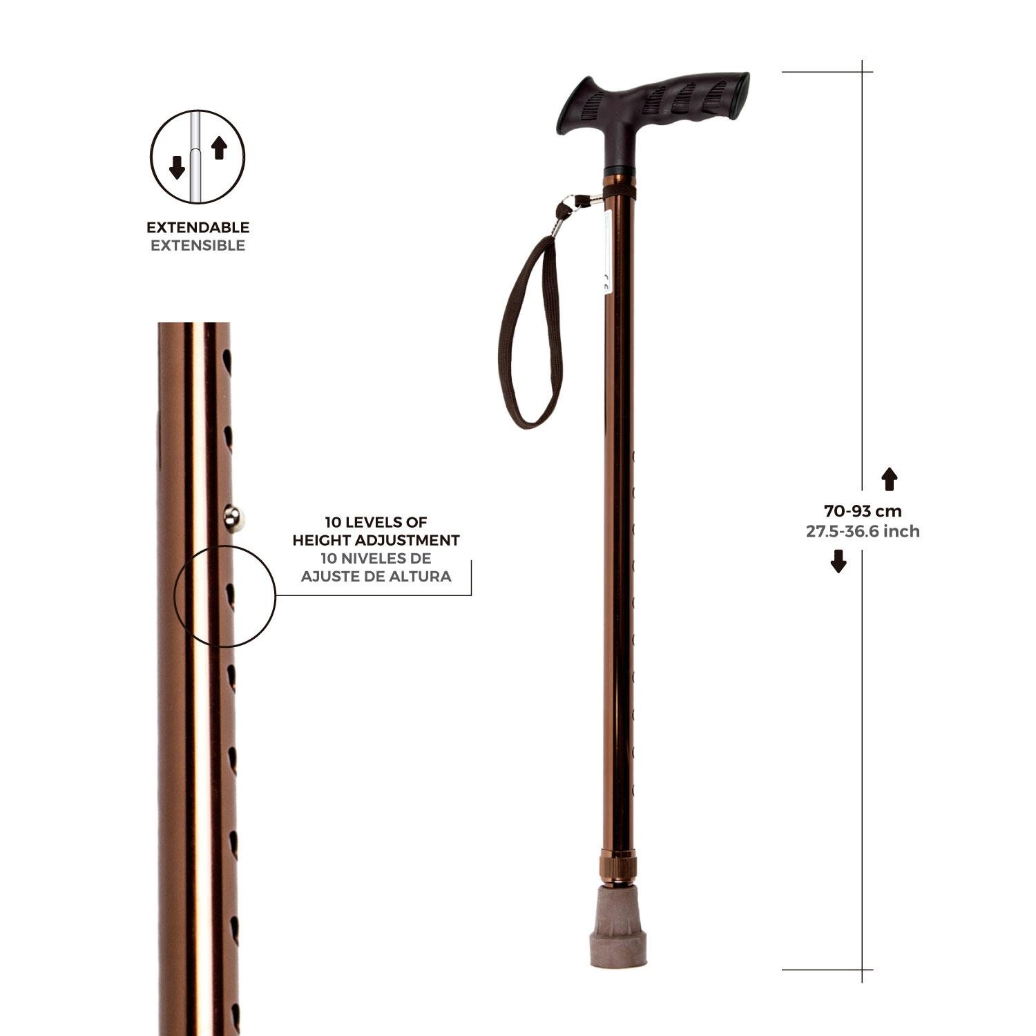 Peso de usuario hasta 100 kg. Empuñadura blanda anatómica ambidiestra. Conteras de goma que favorecen el agarre. Incluye cordón de muñeca. Regulación en altura para adaptarse a cada usuario.