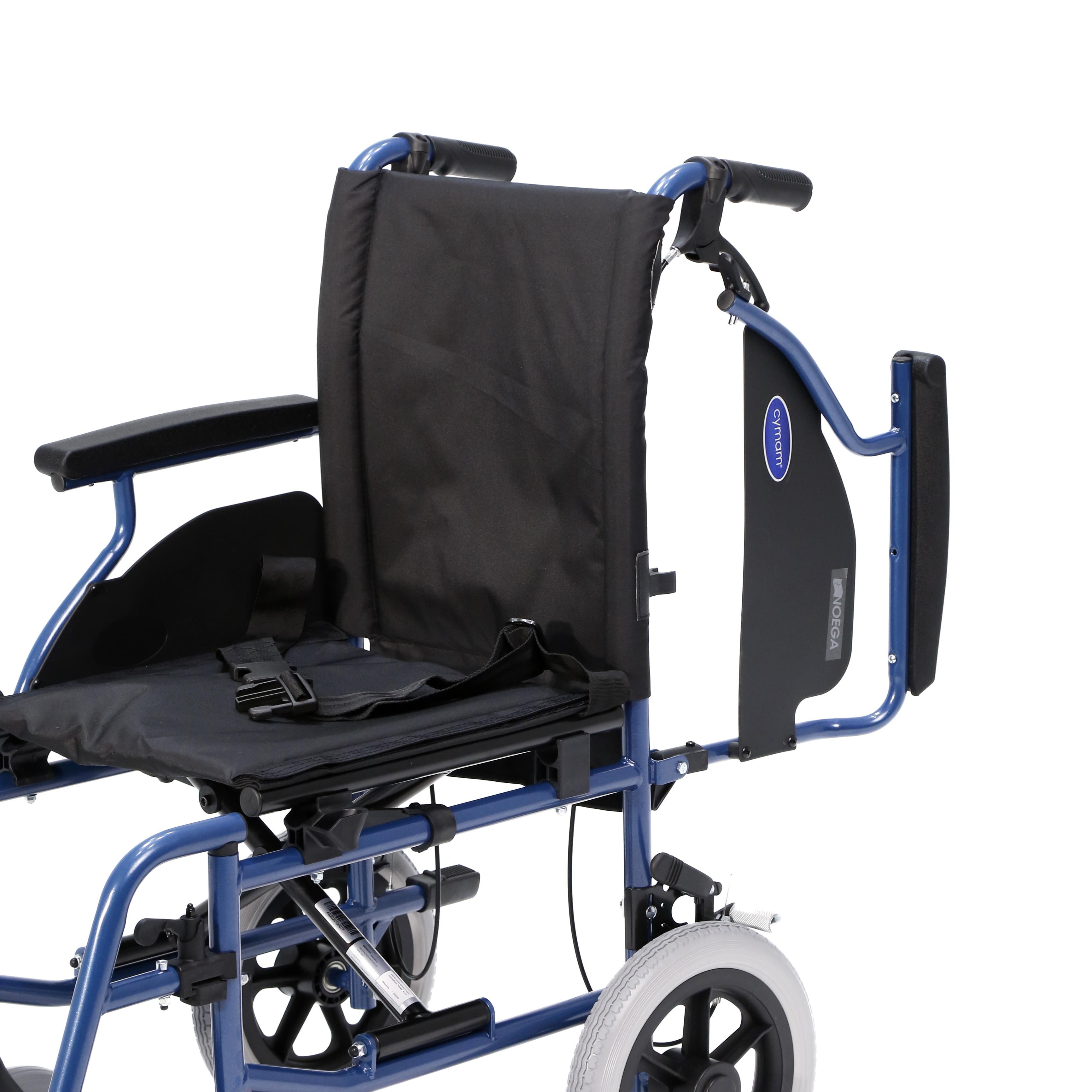 Usuarios con dificultas de deambulación y autopropulsión. Post operatorio. Admite reposapiés elevable y ruedas antivuelco.