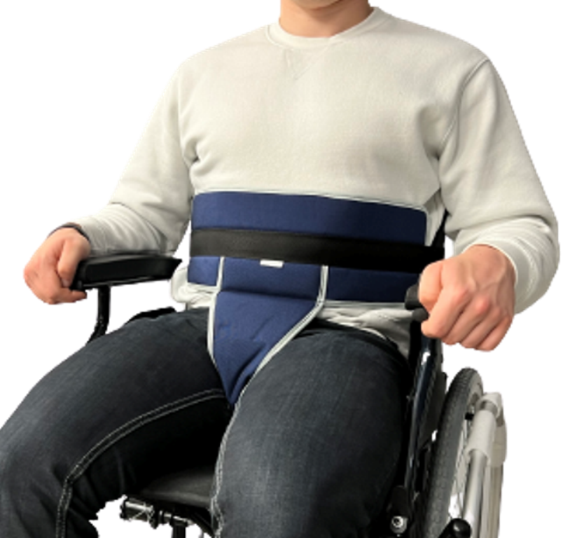 El cinturón pélvico CYMAM evita que el paciente adopte malas posturas, se ladee, evita el riesgo de caída y al tener una sujeción por la zona pélvica evita que el paciente se deslice hacia delante. Ayuda a que el paciente adquiera una postura erguida, controlando la posición de su cuerpo. A su vez, el cinturón pélvico restringe los movimientos del usuario, como levantarse de la silla o sillón.