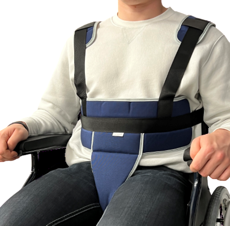 Cinturón de silla pélvico con tirantes de alta resistencia, diseñado para proporcionar sujeción y estabilidad en la silla.Permite mantener una postura segura y cómoda, evitando deslizamientos. Gracias a sus tirantes, se aporta mayor sujeción al paciente ya que evita que el usuarios se incline hacia delante, manteniendo una postura erguida.