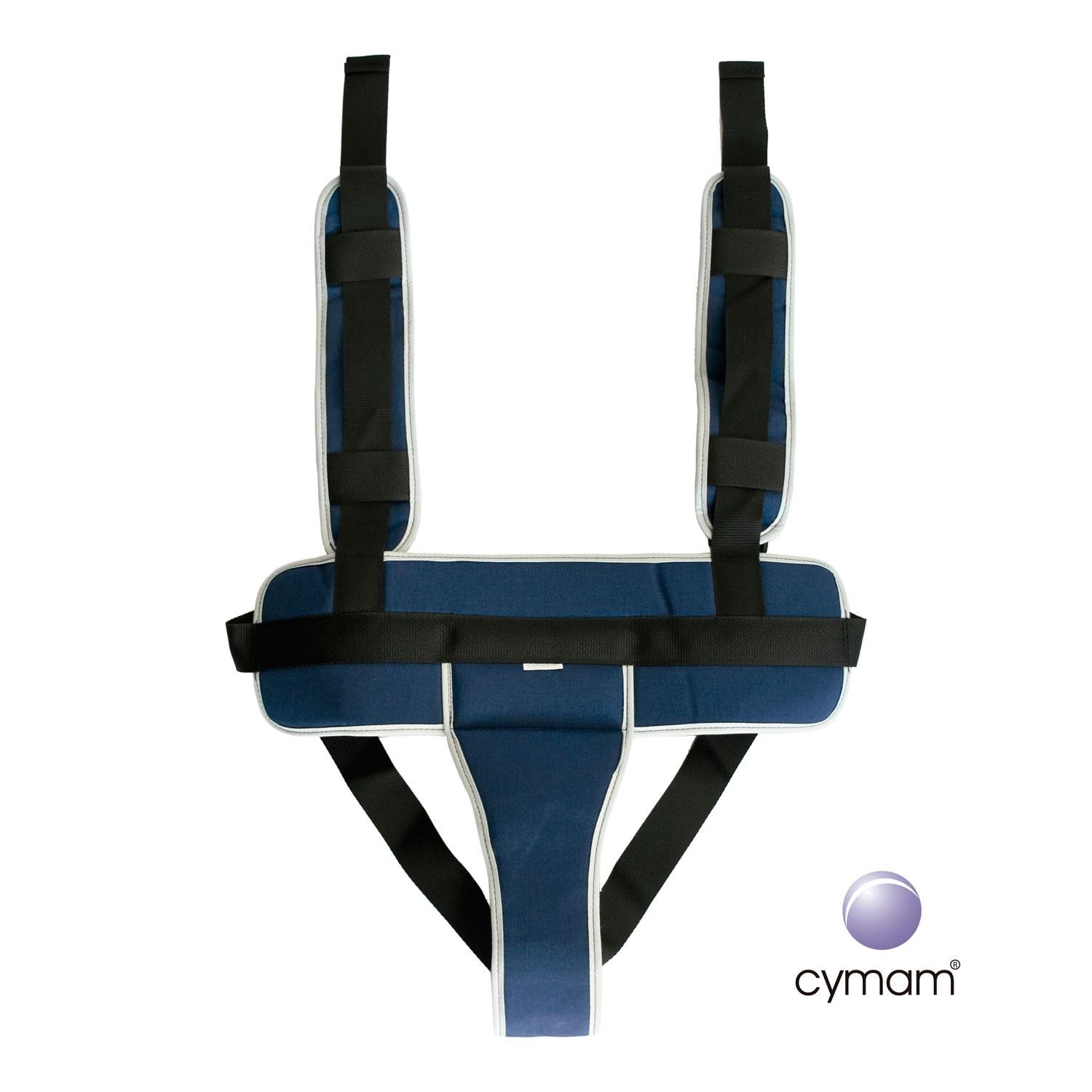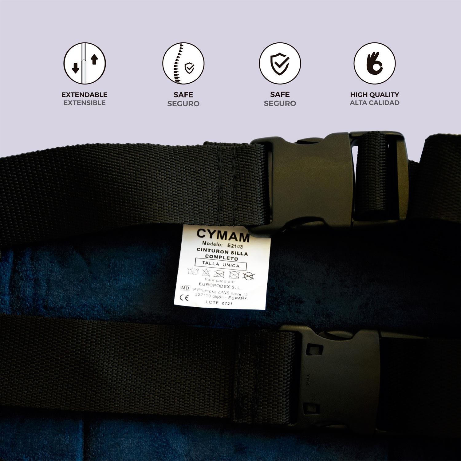 El cinturón pélvico con tirantes CYMAM evita que el paciente adopte malas posturas, se ladee, evita el riesdo de caída y al tener una sujeción por la zona pélvica evita que el paciente se deslice hacia delante. La diferencia con el cinturón pélvico, es que los tirantes aportan mayor sujeción al paciente ya que evita que el usuario se inclina hacia delante, manteniendo una postura erguida. A su vez, restringe los movimientos del usuarios, como levantarse de la silla o sillón.
