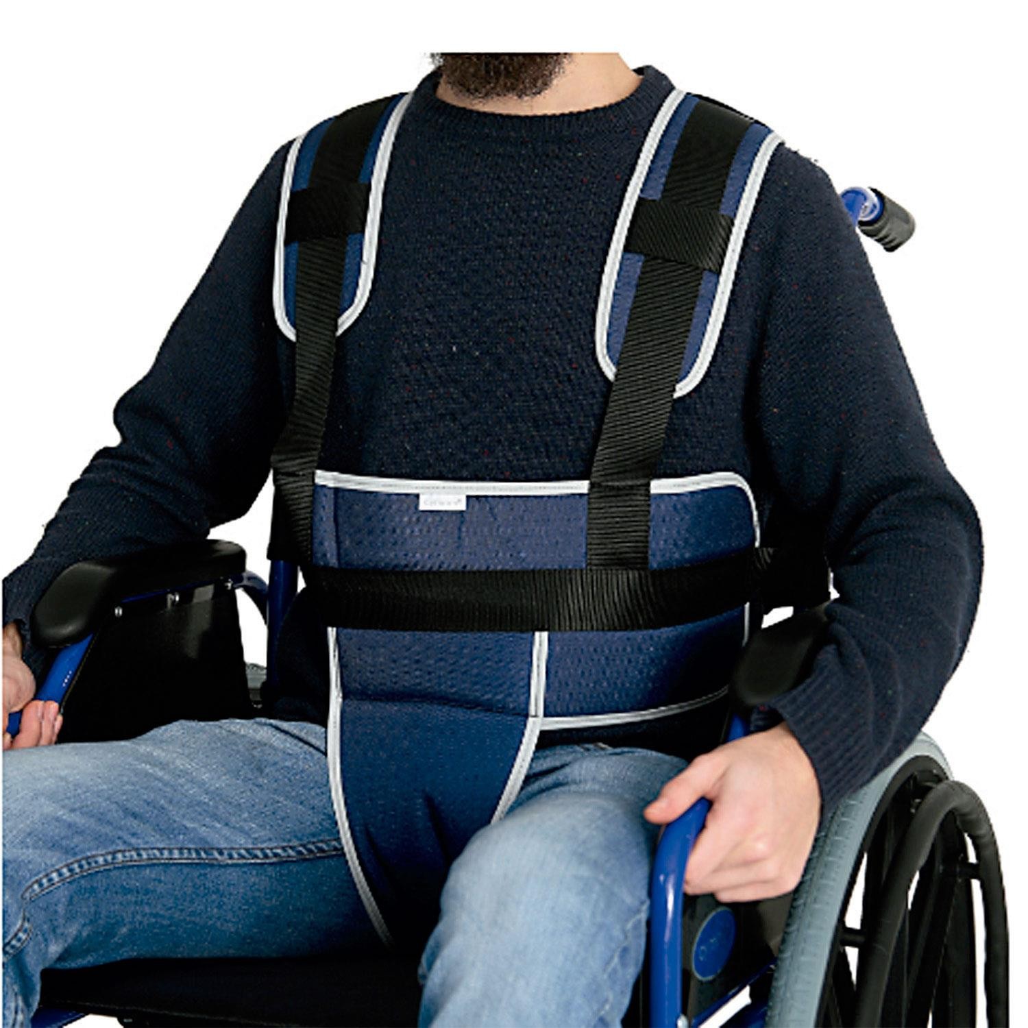 Mayor estabilidad postural gracias a los tirantes adicionales. Evita deslizamientos y caídas, mejorando la seguridad del usuario. Ajustable y ergonómico, se adapta a diferentes tipos de sillas de ruedas. Restringe el movimientos bruscos, evitando que el usuario se levante involutariamente. Cierre de tridente seguro, fácil de colocar y retirar. Talla única, adaptable a distintos usuarios.