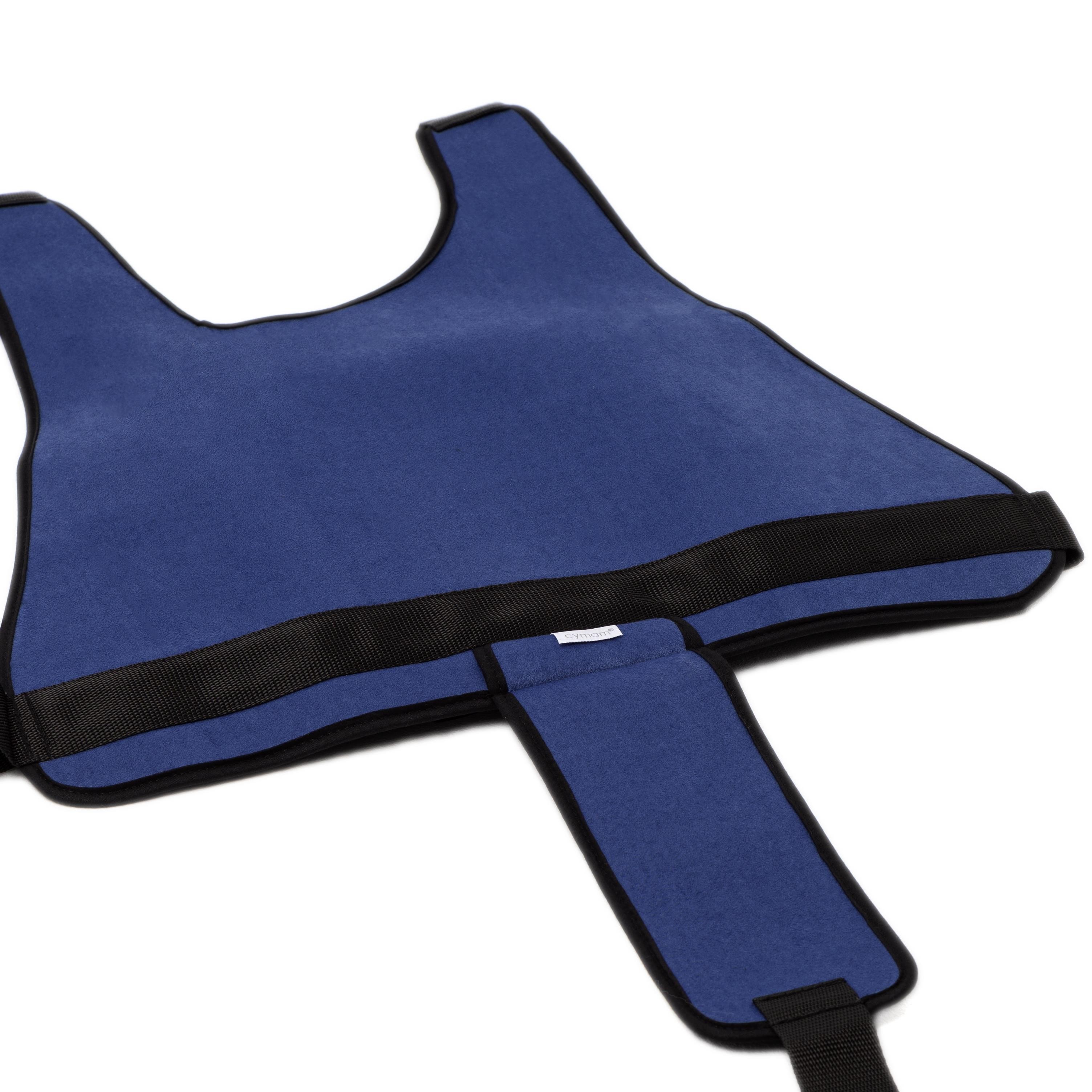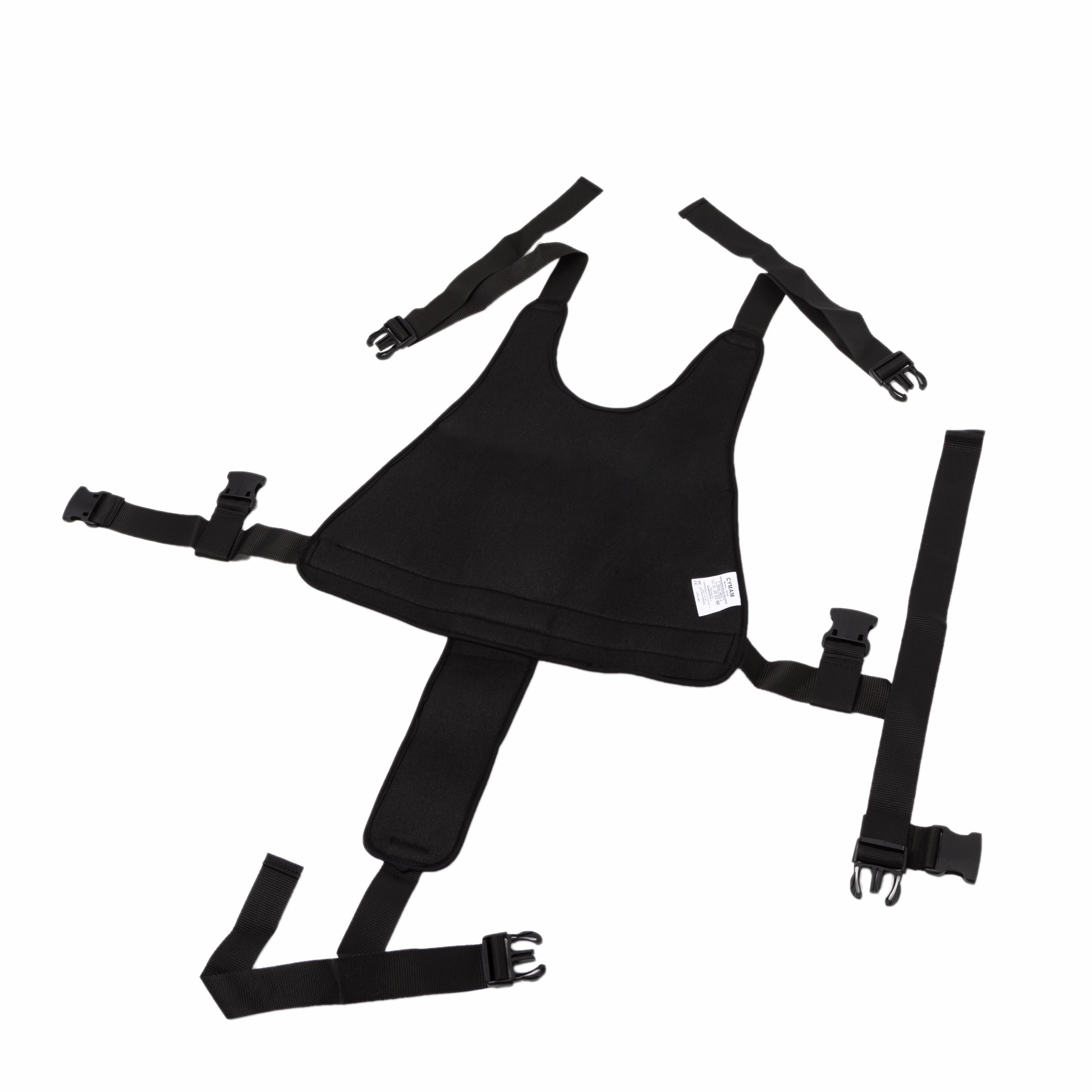 Soporte pélvico y torácico para mayor estabilidad postural. Prevención de deslizamientos, mejorando la seguridad del usuario. Cierre de tridente que permite un ajuste rápido y seguro. Materiales transpirables (nylon cordura y antelina) para mayor comodidad. Diseño de talla única y fácil ajuste, adaptable a diferentes usuarios. Uso en sillas de ruedas o asientos compatibles.